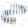 Jogo de dominó com peças brancas e marcação colorida.