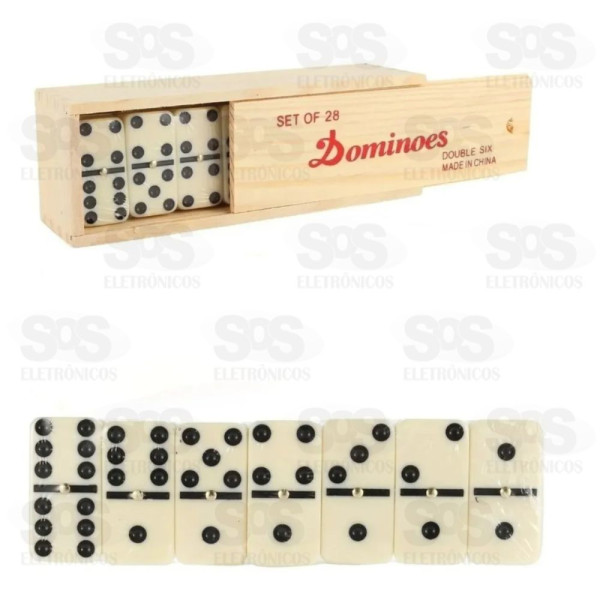 Incrível dominó de 28 peças com grandes peças brancas com pontos pretos. Caixa de madeira. Cada peça mede: 5 cm x 2,5 cm aproximadamente Diversão e competição a qualquer momento com este jogo portátil. Promove a competição, a integração e desenvolve a inteligência.