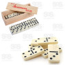 Dominó de 28 peças com grandes peças brancas com pontos pretos. Caixa de madeira. Cada peça mede: 4,5 cm x 2,5 cm aproximadamente Diversão e competição a qualquer momento com este jogo portátil. Promove a competição, a integração e desenvolve a inteligência