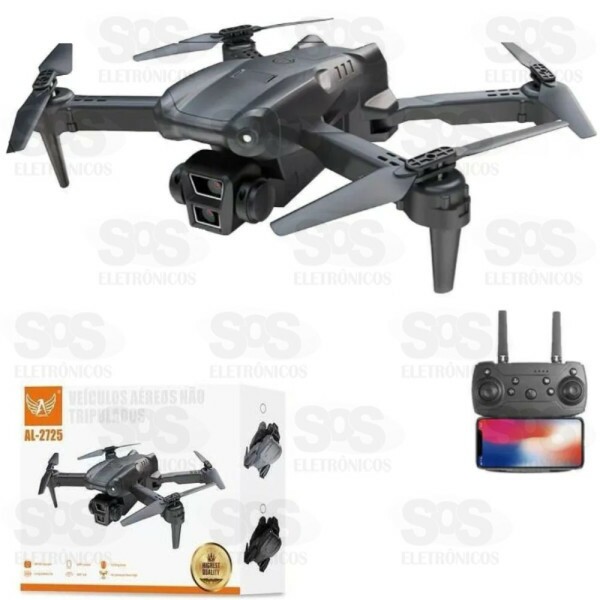 Modelo: AL-2725 • Câmeras: 2 câmeras HD (frontal + inferior) • Tipo: Drone dobrável • Funções: altitude hold, retorno automático, modos inteligentes de voo • Bateria: recarregável • Distância do controle: Aproximada conforme fabricante • Iluminação LED • Sistema anti-vento • Controle remoto incluso Conteúdo da Embalagem 1 Drone AL-2725 1 Controle remoto 1 Bateria Hélices extras Cabo USB Maleta Manual