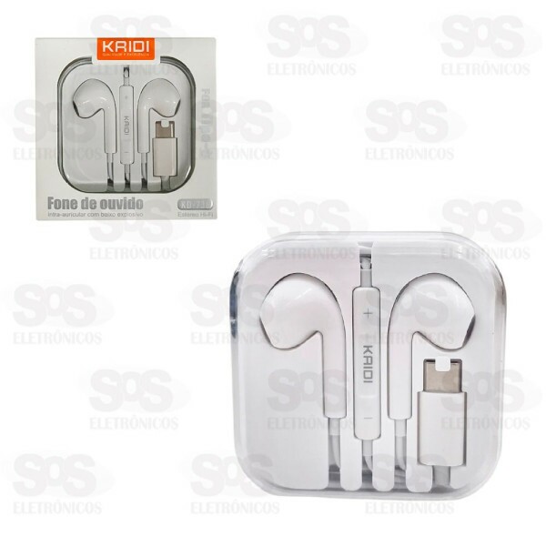 Fone De Ouvido Com Fio Type C Kaidi KD-738 Fone com som estéreo de altíssima qualidade e muito confortável, podendo ser usado por horas sem sentir nenhum incômodo. Construído com excelente material, tornando-o muito resistente. Botões de controle e microfone embitudos no cabo. Ideal para aparelhos com entrada Type-C. Comprimento do cabo: 110 cm Cor: Branco