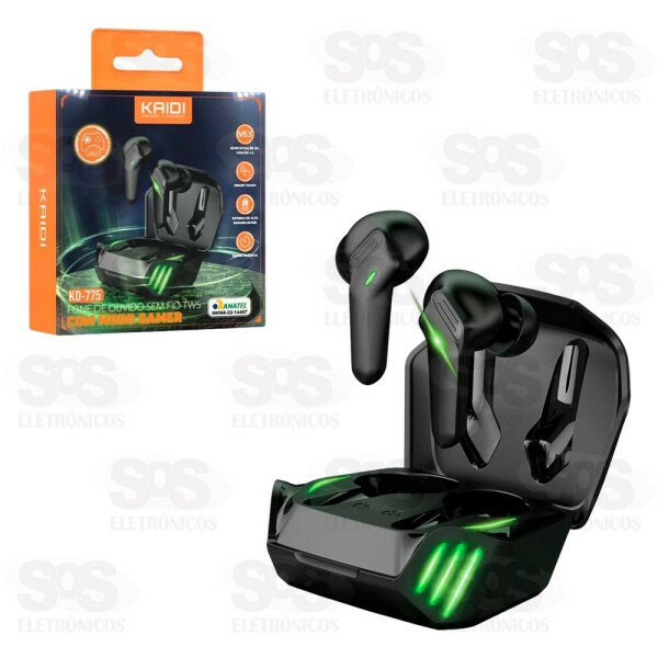 Garantia de 30 dias após a data da compra, contra defeitos de fabricação. Fone de Ouvido Gamer Sem Fio TWS IPX4 Kaidi KD-775 Fone de ouvido sem fio moderno para ouvir músicas e jogar. Com graves e agudos nítidos, sem delay para jogos competitivos e um design que proporciona uma adaptação perfeita aos ouvidos. Conexão bluetooh V5.4. Controle inteligente através do toque. Com microfone embutido. Alta compatibilidade com vários aparelhos. Bateria do estojo: 320mAh Bateria dos fones: 40mAh Bateria recarregável via cabo Type-C. Distância de transmissão: 10 metros Driver: 10mm Proteção IPX4, resistente à água. Cores sortidas.