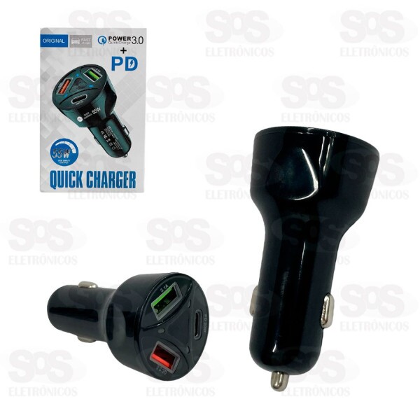 Carregador Veicular QuickCharge 3.0 e Type C 55W CC020