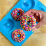 Forma prática em silicone para fazer até 6 donuts, pudinzinhos, e outras receitas simultaneamente.