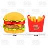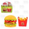 Conjunto de comidinhas com hambúrguer e batatinhas, igualzinho os lanches de verdade.