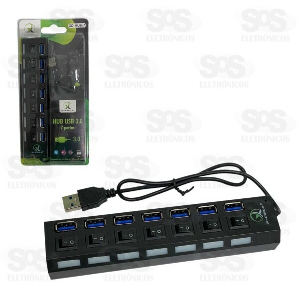 Hub 7 Portas USB 3.0 Com LED X-Cell XC-HUB-7