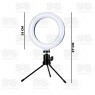 Iluminador Ring Light De Mesa 6 Polegadas 3 Cores Oásis OIH-4901Anel de 6 polegadas com 3 cores de temperatura, branco frio, quente e misto.Ideal para selfies e transmissões ao vivo.Com ajuste de altura e ângulo.Cabo USB com botões de ajustes.Tamanho: 27 x 16 cm
