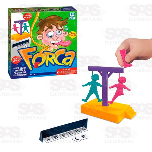 - O clássico jogo da forca, sucesso entre os amigos e família, agora repaginado com novidades pela Nig, que lançou o primeiro jogo da Forca com bonecos em plástico.