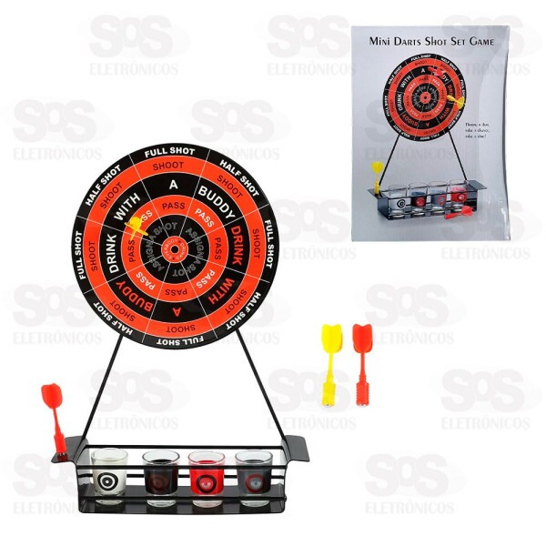 Acompanha 4 dardos magnéticos e 4 copos de vidro.