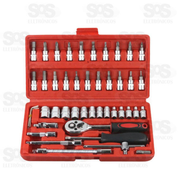 Características Principais: - Conjunto completo de 46 peças, incluindo soquetes, chaves de fenda, chaves inglesas e muito mais. - Maleta resistente e prática para fácil armazenamento e transporte. - Fabricado com materiais de alta qualidade para durabilidade e desempenho superiores. - Adequado para uma ampla gama de aplicações, desde consertos domésticos até projetos de automóveis. Especificações: - Material: Aço Cromo Vanádio - Peso da Maleta: 24x13x5 (C, L, A); - PORTÁTIL: Todas as ferramentas são embaladas em uma caixa de plástico resistente para fácil armazenamento e transporte, mantendo as ferramentas organizadas e convenientes para você colocar as ferramentas que precisa. Itens Inclusos: - 13 Soquetes ¼” - 4 mm - 4,5 mm - 5 mm - 5,5 mm - 6 mm - 7 mm - 8 mm - 9 mm - 10 mm - 11 mm - 12 mm - 13 mm - 14 mm. - 21 Soquetes com Bits: - Ponta Fenda: 4 mm - 5,5 mm - 7 mm; - Ponta Hexagonal: 3 mm - 4 mm - 5 mm - 6 mm - 7 mm - 8 mm - Ponta Philips: 1 - 2 - 3; - Ponta POZI: 1 - 2 - 3; - Ponta Torx: T10 - T15 - T20 - T25 - T30 - T40. - 03 Chaves Hexagonais L: 1,5 mm - 2 mm - 2,5 mm; - 01 Cabo Fixo ¼”; - 02 Extensões de 50 mm (2”) e 100 mm (4”); - 01 Extensão Flexível de 150 mm (6”); - 01 Catraca Reversível ¼” com Quick Release: 15 x 2,7 x 2,3 cm. - 01 Cabo de Força T; - 01 Junta Universal; - 01 Adaptador de Bits; - 01 Caixa de ferramentas Tamanho do invólucro: 240x125x45mm Peso: 1kg