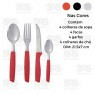 Talheres em inox com cabo de plástico.