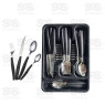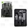 Inclui talheres em aço inox (4 facas, 4 garfos, 4 colheres de mesa, 4 colheres de sobremesa) e porta-talheres organizador.