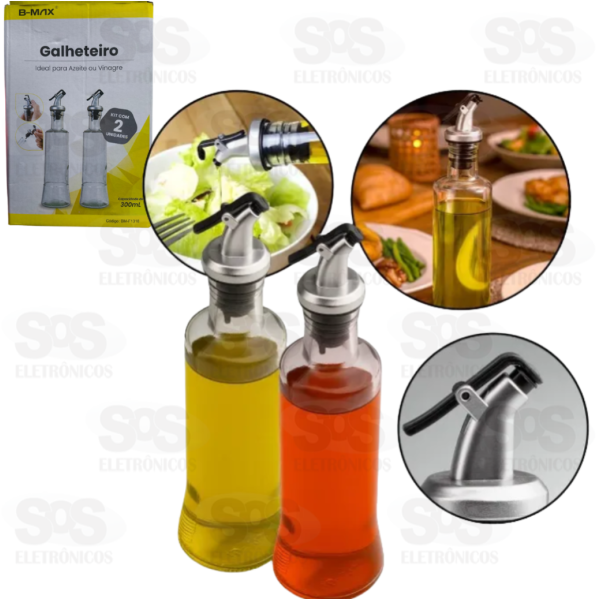 Kit 2 Galheteiro Porta Azeite de Vidro 300ml B-Max F1318