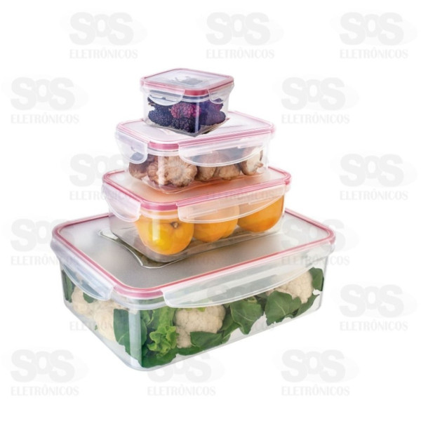 Kit 4 Potes Com Tampa Herméticos Retangular B-Max F1335