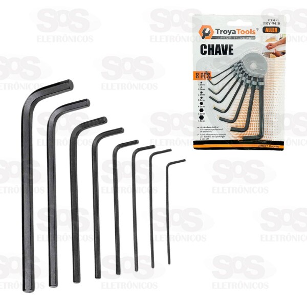 Kit Chave Allen 1.5 a 6.0mm Com 8 Peças TroyaTools TRY-9410