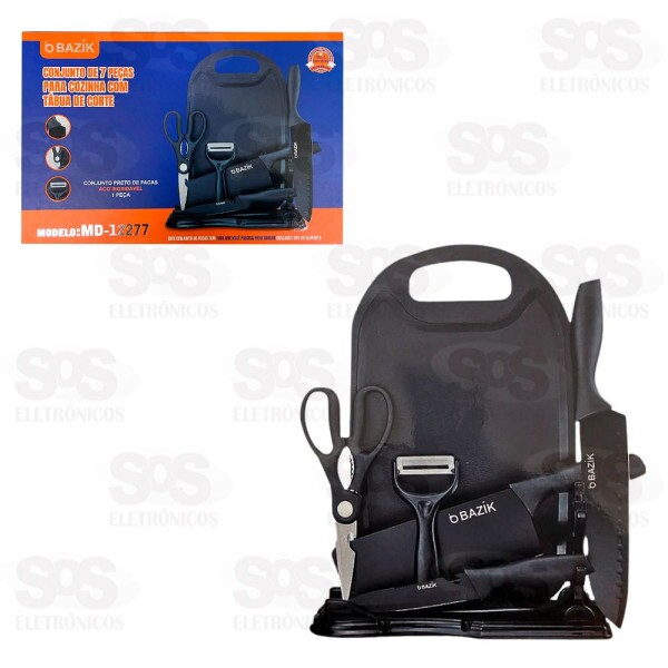 Kit Facas De Cozinha Com Tábua 7 Peças Bazik MD-12277