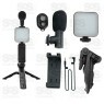 Acompanha um trípé com iluminador LED e microfone para a realização de fotos e vídeos.