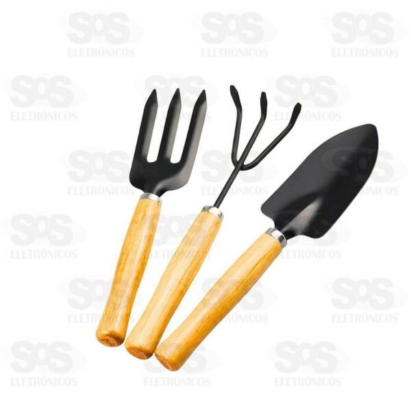 Contém 3 peças: 1 pazinha larga, 1 ancinho 3 dentes e 1 garfo 3 dentes.