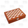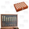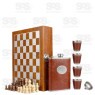 Kit cantil com copos e jogo de xadrez em caixa de madeira.