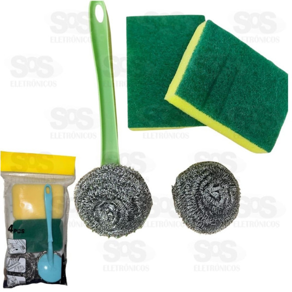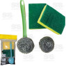 Itens inclusos: 2 esponjas dupla face, 1 escova de plástico e 1 bola de limpeza de aço inoxidável