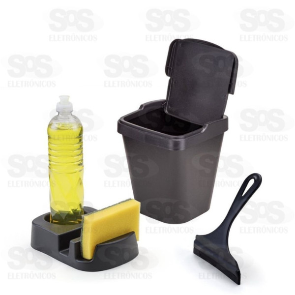 Kit Pia Com Lixeira Rodinho e Suporte Preto 361