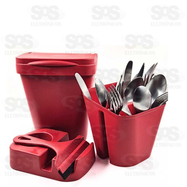 Kit Pia Elegance Com Lixeira Rodinho e Suporte 459