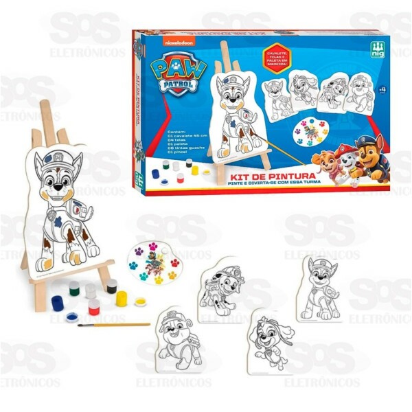 Acompanha 4 telas com desenhos do Marshal, Chase, Rubble, Skye para a criançada se divertir e pintar muito.