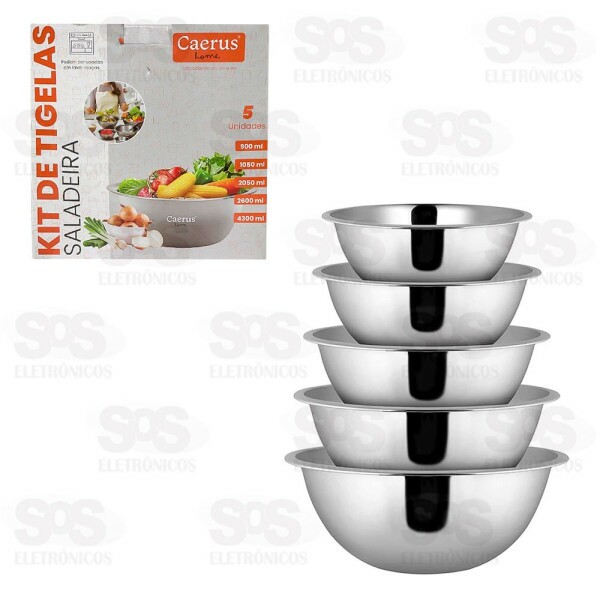 Kit Tigelas Bowl Inox 5 Peças Caerus CRS-2938