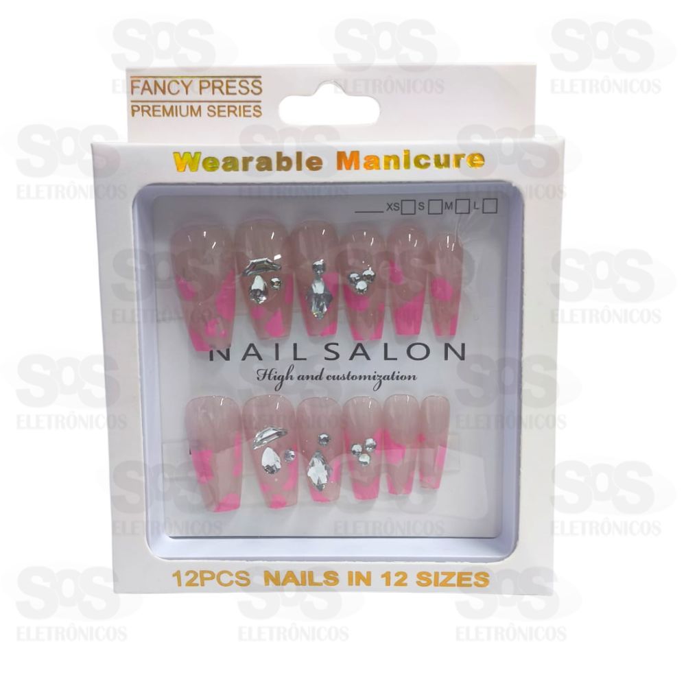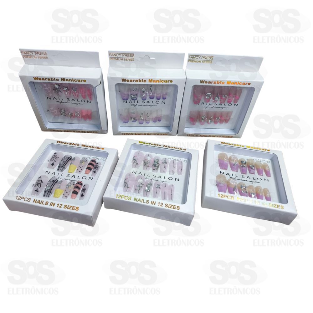 Kit Unhas Postiças 24 Peças decoradas com adesivos brilhos