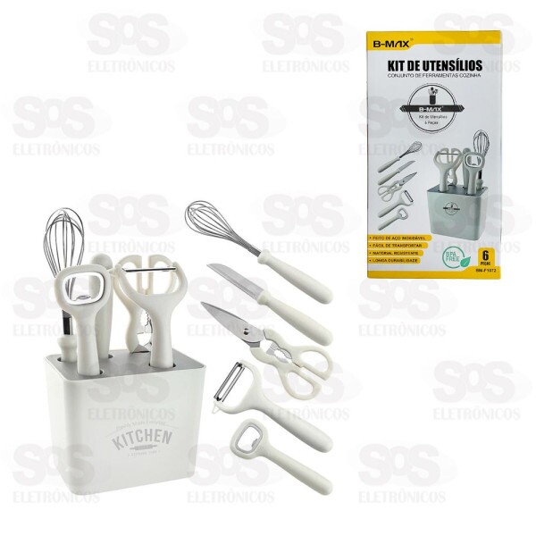 Kit Utensílios Aço Inox 6 Peças B-Max BM-F1072