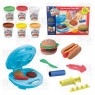 Contem 06 potinhos de massinhas: amarelo, verde, branco, vermelho, marrom e bege, 01 Grill, 01 faca sem corte, 01 rolinho, 01 pegador, 01 aplicador com 4 bicos de formas variadas.