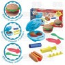 Vamos embarcar nessa aventura da Lanchonete Divertida da Diver Massa? Dentro da grelha, cozinheiros criativos podem imaginar seus próprios hambúrgueres, cachorros quentes e em seguida, dar-lhes forma com a massinha de modelar! Aperte o aplicador decorado para criar batatas fritas de massinha e crie condimentos utilizando as diferentes formas no trilho. Pura diversão!!