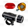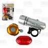 Lanterna para bicicleta com buzina e luz traseira caerus crs-bk04tamanho aproximado da lanterna dianteira:9 cm funciona com 4 pilhas aaa nao inclusa