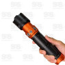 Além da iluminação tradicional, conta com modo laser que auxilia na localização à distância, aumentando sua eficácia em ambiente aberto ou com pouca visibilidade.