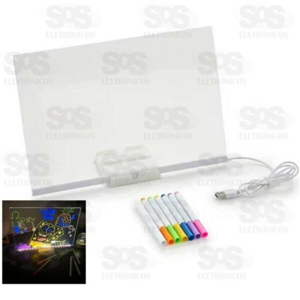 Luminária de LED com placa de acrílico para desenhar e escrever.