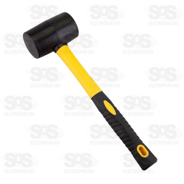 Marreta de borracha com cabo de plástico.