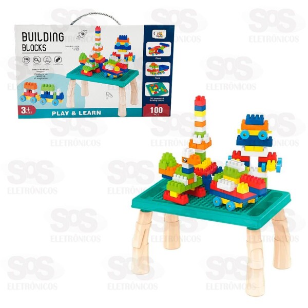Mesa Com Blocos De Montar Coloridos 100 Peças Toy King TK-AB8485