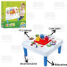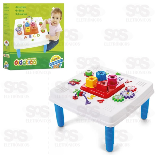Possui central de atividades nos 4 lados que desenvolvem habilidades psicomotoras de concentração, percepção e auditiva. O centro dessa mini mesinha posssui um kit didático com base e formas geométricas que pode ser removido e utilizado a parte.