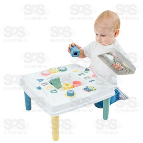 Mesinha na medida certa para seu bebê! Possui central de atividades nos 4 lados que desenvolvem habilidades psicomotoras de concentração, percepção e auditiva. O centro dessa mini mesinha posssui um kit didático com base e formas geométricas que pode ser removido e utilizado a parte. Mini mesinha didática, desde cedo estimulando a criança nesse universo de cores, atividades e desafios! Desenvolve a coordenação motora Estimula a concentração Amplia a capacidade de percepção Desenvolve a interação com o meio Ideal para atividades individuais ou em grupo Desperta a criança para a convivência social Ficha Técnica Itens Inclusos: 4 Pés Bastão de Encaixe, 1 Kit Didático Removível Central, 1 Base Mesa de Atividades Psicomotoras Restrição de Idade: +12 meses
