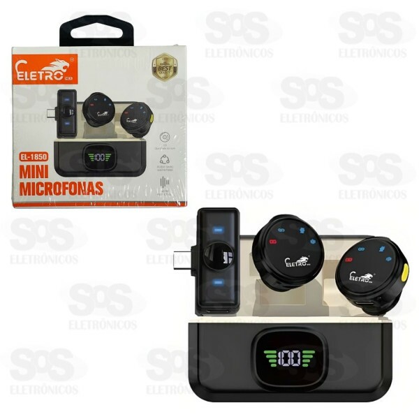 Microfone De Lapela Duplo Sem Fio Type C Eletromex EL-1850