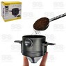 O filtro portátil possui abas retráteis que possibilitam seu uso nos mais diversos tamanhos e tipos de recipientes.