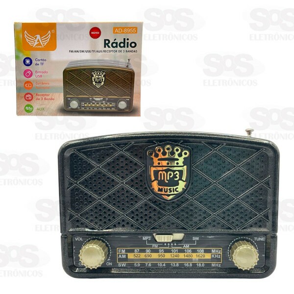 Mini Rádio Retrô Bluetooth AM/FM 3 Bandas Altomex AD-8955