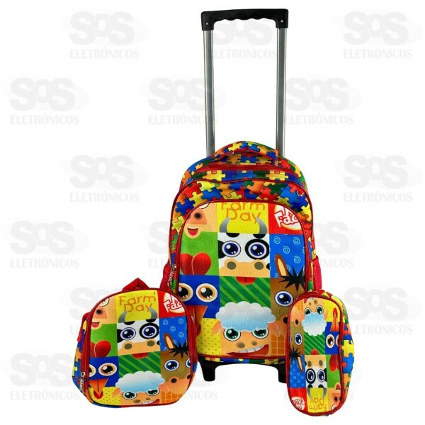 Mochila Infantil Com Estojo e Lancheira Fazendinha FUM243