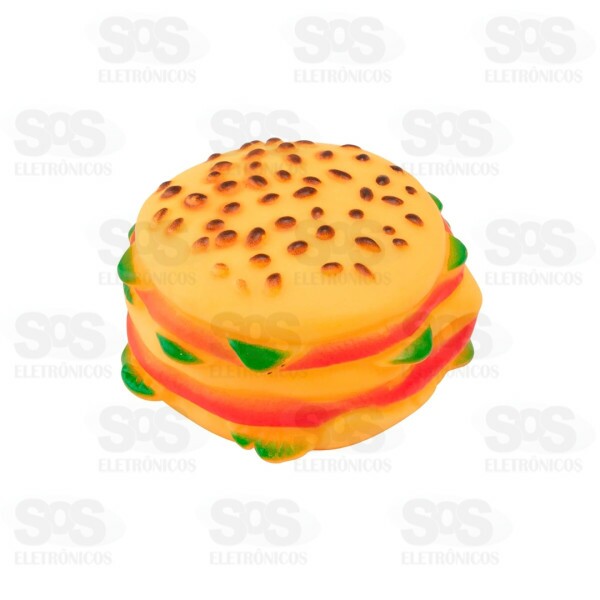 Hambúrguer de borracha que ao ser apertado emite som de apito.