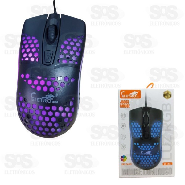 Mouse Gamer 2400 DPI Com Fio USB RGB Eletrmex EL-2111