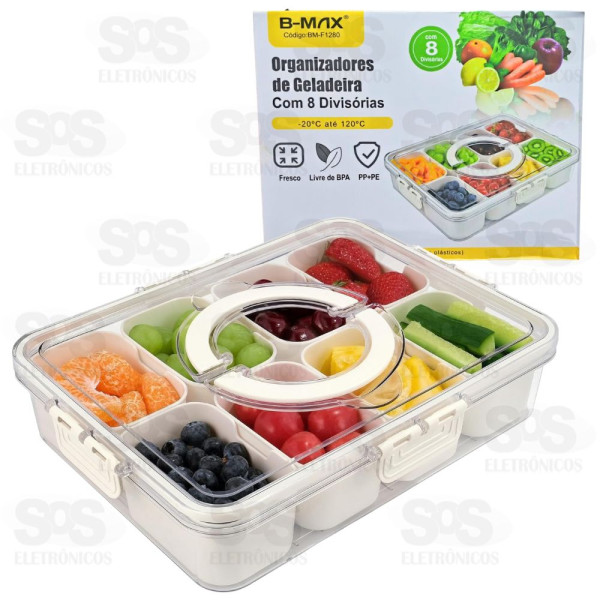 Organizador de Alimentos Com 8 Divisórias Tampa Hermética B-Max F1279