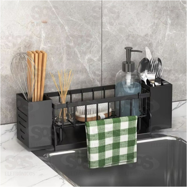 Organizador de pia com suporte para esponjas e escovas, otimizando o espaço na cozinha ou banheiro.