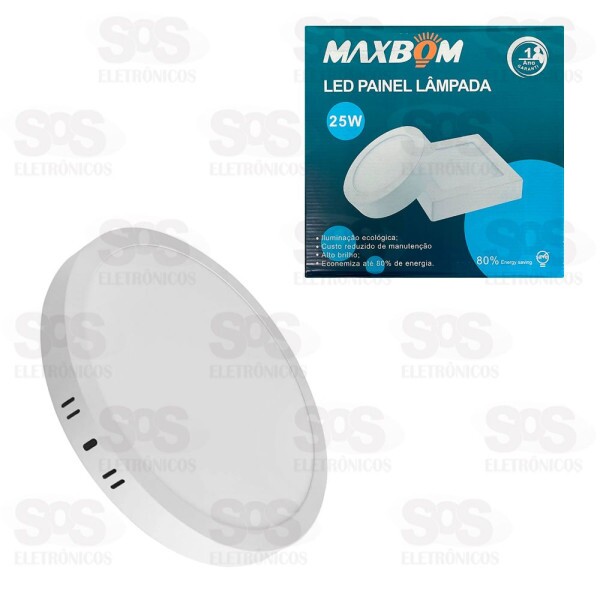 Painel Redondo Sobrepor LED Branco 25W Maxbom