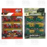 São 6 modelos diferentes em cada kit com carrinhos à fricção de aproximadamente 6 cm cada
