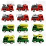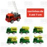 São 6 modelos diferentes em cada kit com carrinhos à fricção de aproximadamente 6 cm cada